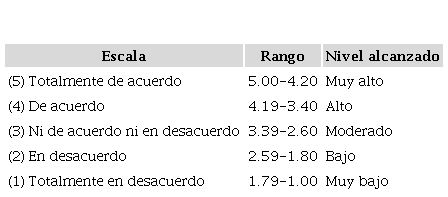 Los agentes informantes respondieron un cuestionario conformado por 18 ítems, cada uno con preguntas cerradas derivadas de los indicadores; compuesto por cinco alternativas de respuestas, tipo escala Likert con sus respectivas valoraciones. Se observa que estas alternativas de selección se presentan a partir de valores mínimos (1) y máximos (5) de la escala presentada. Luego, se procedió al cálculo del baremo para conocer la media de la variable, como puede visualizarse en el cuadro 3.