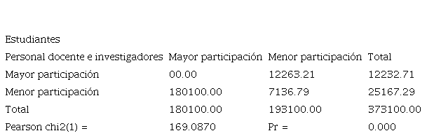 Se establece que un total de 180 encuestados consideran que los estudiantes tienen mayor participación y el personal docente e investigadores ocupan una menor participación. Niebles Nuñez et al. (2018) asegura que la responsabilidad social cumple un rol fundamental en las instituciones de educación superior, donde los profesionales sean capaces de poner en práctica sus técnicas de aprendizaje para promover una nueva sociedad transparente (Palacios y Coppa, 2015). Por lo mismo, cada estudiante recopila lo enseñado, ya que el impacto intelectual que reciben repercuteen la formación de futuros jóvenes profesionales (Martín del Campo, 2016). Se puede evidenciar que el test de Chi-cuadrado de Pearson arroja un resultado del 169.0870, donde abarca un p-valor del 0.00 por lo cual se rechaza la hipótesis alternativa y acepta la hipótesis nula.