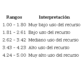De conformidad con las características especificadas con anterioridad sobre los aspectos metodológicos de la investigación, se diseñó un baremo para interpretar los datos referidos a los recursos del edu2.0 y las actividades interactivas relacionadas con esta plataforma (ver Cuadro 1).