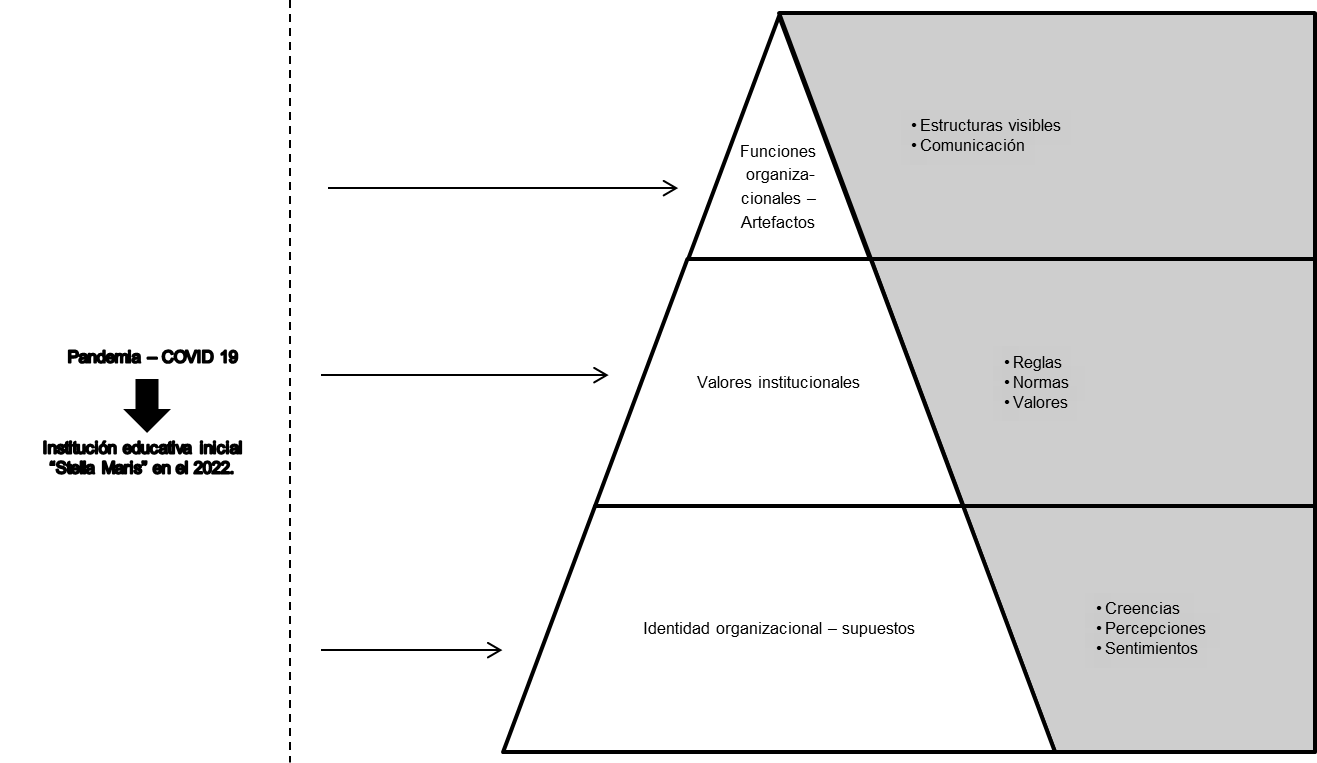 Abstract: In times of pandemic, educational institutions were forced to make adjustments in their management in order to direct the development of academic, research, linkage or extension processes and even administrative and support processes. Once the pandemic is over, it is essential to have a positive and healthy organizational climate in the institutions, as well as to have an organizational culture that provides confidence, security, and stability in the educational agents, especially in the teachers, who are close to the students and are key actors in their academic growth and the achievement of the goals set. In this context, the objective of the research was to analyze the organizational culture from the teachers' perspective in the initial educational institution "Stella Maris," Peru. The research was developed through the qualitative approach, naturalistic paradigm, with a phenomenological and hermeneutic design, as an instrument of data collection, was the interview guide, administered in depth to teachers through a focus group of experts. The findings show that the organizational culture in the institution studied was strengthened in times of pandemic, and according to teachers' perception, it is positive at all levels studied, constituting an important foundation in the entity. The development of organizational culture provides a solid foundation that offers a harmonious work environment and efficient performance in the educational institution.