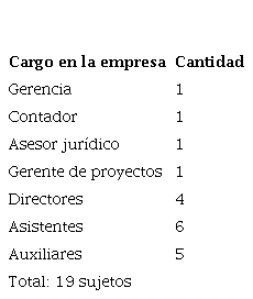 El desarrollo de este estudio se abordó desde el paradigma positivista, dentro de la lógica de la investigación cuantitativa, de tipo descriptivo; corresponde a un diseño no experimental, transeccional y de campo (Hernández et al; 2018). La población se estableció como censo poblacional al considerarse una cantidad reducida y manejable, con un total de diecinueve sujetos perteneciente al área administrativa de la empresa Suministros y Construcciones Sandoval S.A.S de Riohacha D.E.T.C a corte de Agosto del año 2022, fecha de aplicación del instrumento; esta fue escogida como objeto de investigación por su trayectoria de más una década y su consolidación como un referente en el Distrito, convirtiéndose en la más representativa en la especialidad de instalaciones eléctricas; brindando soluciones a las necesidades de grandes proyectos comerciales e industriales de particulares o empresas que requieran de sus servicios. (Ver tabla 1).