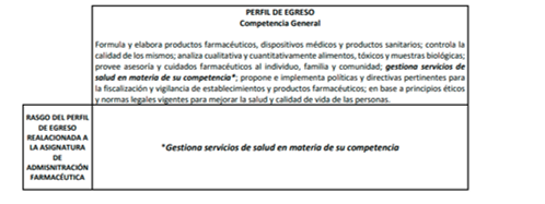 2. Se delimitó el rasgo del perfil de egreso (competencia general) comprometidas en la asignatura de Administración Farmacéutica.