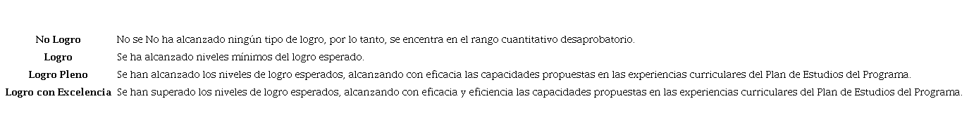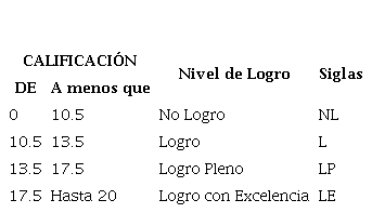 5. Se establecieron la escala de valoración de logro de competenciasy perfil de egreso (Tabla 1) con sus respectivos descriptores (Tabla 2).