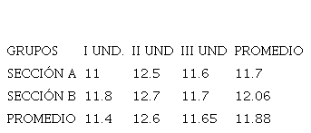 6. Se identificó los calificativos promedio por cada unidad de aprendizaje para cada sección de los matriculados en la asignatura de Administración Farmacéutica y se obtuvo el promedio general de logro de competencias (Tabla 3).