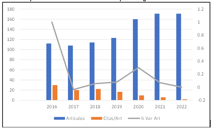La investigación ha dado evidencia del nivel en que se encuentra el estado del arte y el nivel de producción científica acerca del Desempeño Organizacional. Los resultados del análisis bibliométrico han mostrado que las publicaciones sobre esta línea de investigación se han incrementado progresivamente en el periodo comprendido entre los años 2016 y 2022.