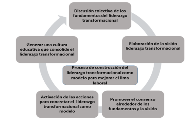 La construcción de un liderazgo transformacional en las instituciones educativas, pasa por acuerdos necesarios para definir sus dimensiones y sus componentes. Así, es imprescindible que, en el proceso de la generación o diseño de un modelo asociado al ejercicio de este liderazgo, se desarrollen estrategias dialógicas para que los colectivos institucionales discutan los principios o valores que debe mostrar un liderazgo transformacional para mejorar el clima laboral docente. En este sentido, en lo que sigue, se debe cubrir la necesidad de lograr compromisos axiomáticos en los diferentes escenarios en los que la gestión educativa tiene pertinencia. De acuerdo a la investigación teórica desarrollada aquí, algunos de esos acuerdos serían: