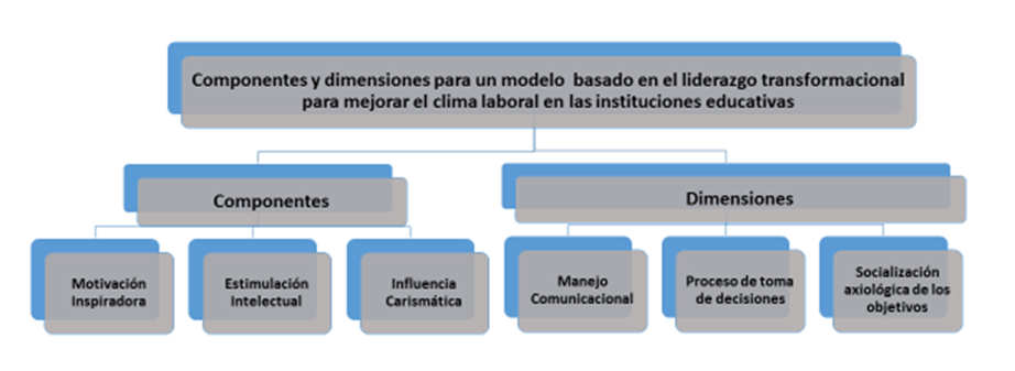 Finalmente, como corolario de los resultados de este estudio, en la Figura 2 se resumen las dimensiones o componentes del liderazgo transformacional visto como un modelo teórico que puede fortalecer un clima laboral docente constructivo y colaborativo.