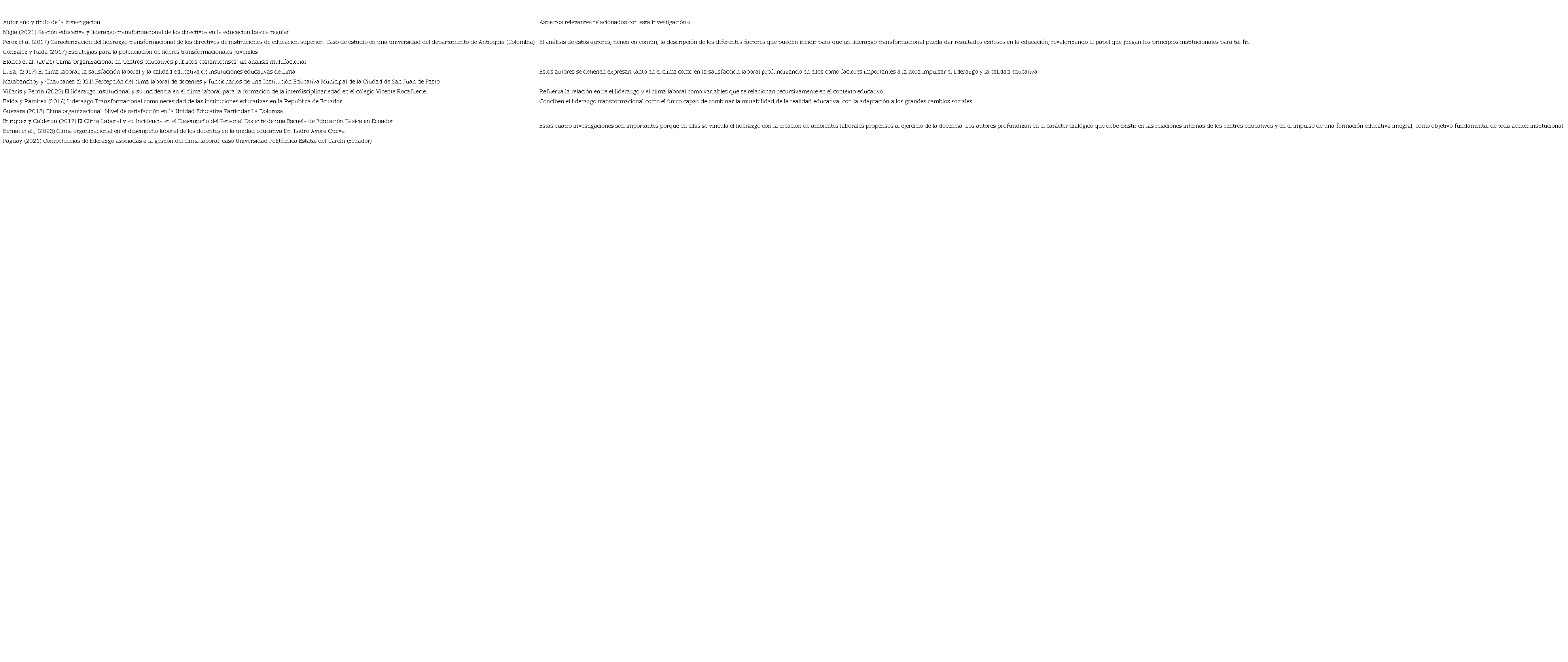 Palabras clave: liderazgo, liderazgo transformacional, modelo, clima laboral, componentes del clima laboral, instituciones educativas.