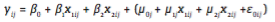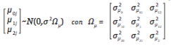 (2)Donde μ0j , μ1j y μ2j son variables aleatorias que se distribuyen conjuntamente normal con matriz de varianza covarianza, Ωμ definida como: