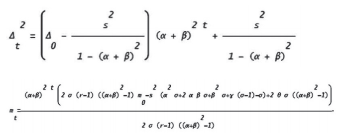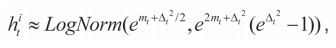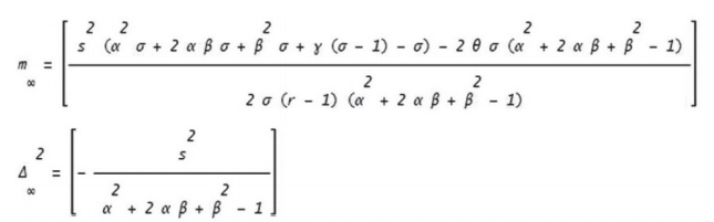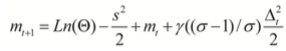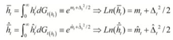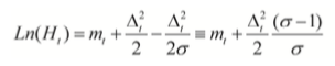 La solución general resulta de la suma de las soluciones particular y complementaria. Una vez determinados los valores iniciales, bajo t = 0, se obtienen las expresiones dinámicas completas del primero y segundo momento de la distribución log-normal (mt, Δ2t ):