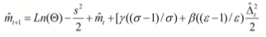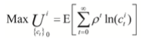 Los individuos que pertenecen a una determinada dinastía maximizan la siguiente función de utilidad esperada en el consumo con una tasa de descuento intertemporal ρ.