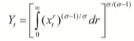 es el agregador de capital humano para la economía como conjunto introducido por (Bénabou 1996b). Este índice capta la complementariedad en la producción y puede verse también como: Ht =[E[h(σ-1)/σ]]σ/(σ-1).