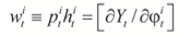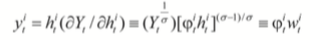 [1.4.]El superíndice denota cada uno de los insumos. Los trabajadores se especializan en cada uno de estos insumos y, de acuerdo con su dotación de capital humano, producen a través de: X rt = φi t h it y obtienen ingresos laborales según el tiempo dedicado al trabajo y el valor de la hora marginal: