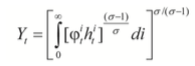[1.6.]A partir del patrón de especialización de los trabajadores en cada tarea, el producto agregado de la economía puede reescribirse, para el momento t, incorporando de manera explícita el capital humano individual de la generación contemporánea como: