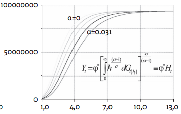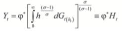 [1.9.]Ahora bien, otra forma de expresar el producto agregado, teniendo en cuenta la distribución del capital humano en la fuerza de trabajo total (Gt(h)) y conociendo el valor de equilibrio φ* es la siguiente: