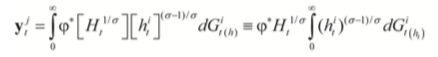 La tecnología de producción sigue una especificación CES con insumos x y elasticidad de sustitución σ. El producto agregado de la economía queda expresado en la siguiente ecuación: