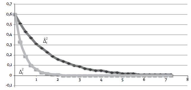 [1.24]Adicionalmente, como (α+β) < 1, el nivel de equilibrio intertemporal de la dispersión es
