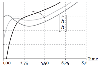 , para los dos regímenes, mediante un ejercicio de inducción hacia atrás queda determinado el comportamiento global del sistema dinámico, así como la brechas entre los dos regímenes alternativos en la acumulación de capital humano de las diferentes dinastías. La siguiente ratio expresa formalmente la magnitud de la brecha entre el modelo centralizado y el descentralizado: