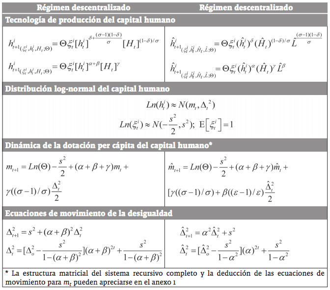 Palabras clave: capital humano, desigualdad, condiciones iniciales, régimen centralizado, régimen descentralizado, simulación dinámica.