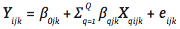 Xqijk es el predictor q del nivel 1 para el caso i en la unidad j del nivel 2 y en la unidad k del nivel 3;