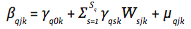 En el modelo del nivel 3, los coeficientes γqsk definidos en el modelo del nivel 2 se presentan como variables dependientes en el modelo del nivel 3: