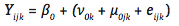 En el modelo del nivel 1 se representa la variable dependiente para el caso (alumno) i dentro de la unidad j del nivel 2 y la unidad k del nivel 3 como: