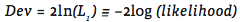 Los procedimientos de máxima verosimilitud también producen un estadístico llamado deviance. Este estadístico indica qué tan bien se ajusta el modelo a los datos. Si llamamos L1 al valor máximo de la función de verosimilitud (likelihood) en la estimación de los parámetros del modelo 1, entonces se define la deviance: