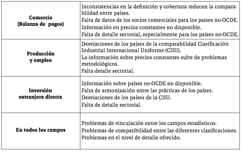 La definición y clasificación de las actividades de servicios varían, considerablemente, de un sistema de cuentas nacionales a otro dificultando las comparaciones internacionales.