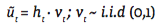 La variable ũtes multiplicada por la constante √g1 =1 cuando el proceso se encuentra en el régimen representado por st =1, multiplicada por √g2 cuando st =2, y en general por √gk cuando st =K. El factor para el primer estado g1 es normalizado a la unidad con gj ≥ 1 para j=2,3,..K. El cambio en el régimen representará pues un cambio en la escala del proceso.