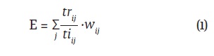 Tomando como referente el estudio de López, Mancebo y Ortega (2006) se ha tratado de acopiar la información para poder resolver la fórmula (E = (Σtrij/Σtiij). Wij) identificada en ese estudio, la cual mide el indicador de eficiencia de la red, en razón de la calidad de las infraestructuras disponibles y de la relación entre los tiempos de desplazamiento reales y los ideales entre dos puntos de una red7.