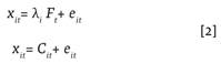 donde et=(e1t ,e2t ,…,eNt )’. Nótese que a pesar de que el modelo es específico en cuanto a la relación estática entre xit y Ft , Ft mismo puede ser un vector dinámico. En el caso en que Ft y Xt sean conjuntadamente estacionarios, Ft puede pensarse como el producto de una dinámica que sigue una representación de vectores autorregresivos (VAR):