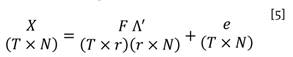 Siguiendo a Bai y Ng (2008), sea N el número de unidades de sección cruzada y T el número de observaciones en el tiempo , para i=1,…,N y t=1,…,T, el modelo por factores estáticos (MFE) se define como: