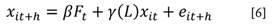 Tal y como lo señalan Stock y Watson (2006) el pronóstico del modelo por factores se puede llevar a cabo a través de una regresión simple de los factores estimados sobre adelantos de la variable que se quiere estimar. Es decir, el pronostico de h-períodos adelante se puede realizar directamente a través de una regresión de xit + h sobre los factores estimados en el paso anterior, así: