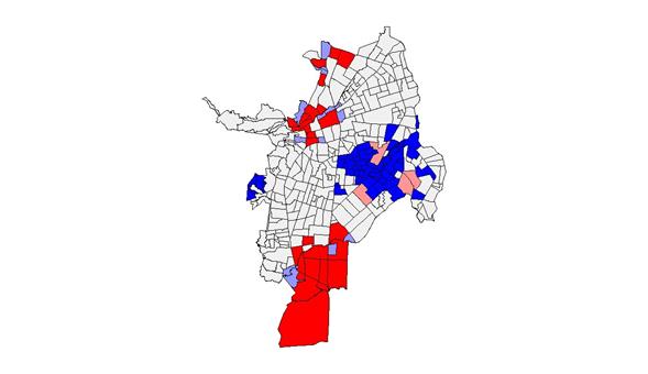 La relación entre el indicador de densidad de capital humano y la estructura de precios del suelo muestra la consistencia de los hallazgos. Las estimaciones de econometría espacial nos enseñan que en aquellos barrios con alta concentración de población afrodescendiente y con baja composición de capital humano, los precios del suelo son bajos (zona oriental) y que en los barrios con alta densidad de capital humano y baja concentración de población afro, los precios del suelo tienden a ser elevados