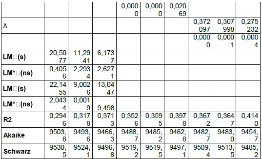 Donde 𝑢 es un término estocástico y 𝜆 el parámetro autorregresivo que refleja la intensidad de las interdependencias entre los residuos. Los resultados de las estimaciones para los modelos mencionados se encuentran en la tabla 4.