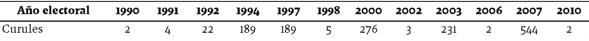 Además, las identidades de base étnica ganan espacios de participación político-electoral gracias al proceso de descentralización y participación ciudadana y gracias al establecimiento de las circunscripciones indígenas especiales, que aseguran el acceso a curules en el Congreso (Laurent, 2010), como puede constatarse en la Tabla 2.