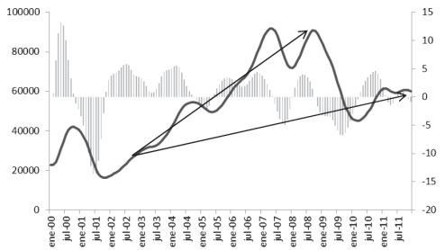Una vez roto el patrón de acumulación centrado en la valorización financiera de los excedentes predominante hasta el 2002, por la falta de confianza en el sistema financiero generada por la crisis y las bajas tasas de interés en términos reales (CENDA, 2010), se produjo una fuerte movilización de buena parte de estos excedentes hacia el sector inmobiliario y particularmente en la construcción en las principales ciudades del país (Fundación Banco Municipal, 2012b). De esta manera, las nuevas unidades edificadas se comportaron como un activo financiero, produciendo grandes ganancias para los inversores y un incremento más que significativo en el precio de los inmuebles (Barenboim, 2010).