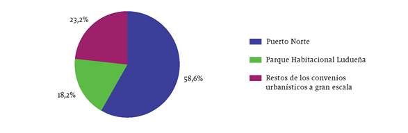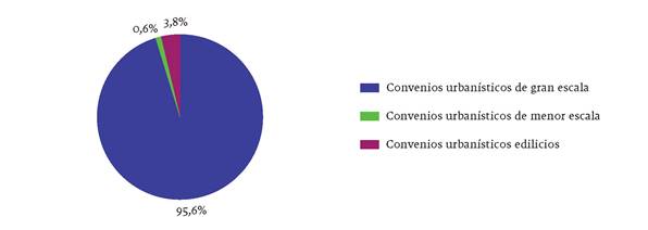 Todos ellos se materializan a través de convenios urbanísticos de gran escala de nueva urbanización y/o reconversión urbana, los cuales representan 95,6% de las inversiones privadas acordadas a través de convenios urbanísticos (Gráfico 2).