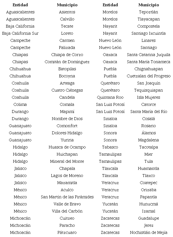 Por razones de espacio, en la Tabla 3 se presenta una selección de 64 de los 122 municipios adicionales referidos en el inciso b.