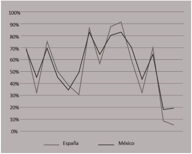 Por último, sobre los referentes del estudiantado se descubren diferencias significativas. Al indagar acerca de la creencia de que sus compañeros y compañeras los rechazan cuando denuncian una situación de VG, descubrimos que el alumnado de la UV se muestra en desacuerdo en mayor medida que el estudiantado de la UAEM. Este hallazgo revela una mayor resistencia por parte del estudiantado de la UAEM hacia la introducción de la perspectiva de género en la práctica cotidiana universitaria.