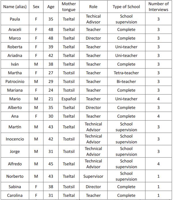 A total Of 54 interviews were recorded, transcribed, and analyzed to identify critical moments considered representative of indigenous teachers' lives and learning. Categories were generated from the bottom up and a first compilation of testimony was organized into three fields (Organizational Climate, Leadership, and Vocation). Subsequently, these fields were further divided using the following sub-categories — tolerance, responsibility, solidarity, critical and systemic awareness, and participation.