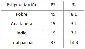 El estigma es una clasificación de rechazo hacia una persona o grupo porque es portador de algún atributo que el grupo dominante considera negativo. En el lenguaje coloquial se mencionan términos peyorativos y ofensivos para referirse a aquellas personas que por alguna peculiaridad son diferentes a la generalidad y provoca su rechazo y alejamiento. Tener esta particularidad invisibiliza las virtudes y los coloca en situaciones de desventaja e inferioridad respecto a los otros, lo que genera un efecto de descrédito social ante los demás (Goffman, 2008). En el caso de los grupos indígenas, la falta de información y ciertos estereotipos sedimentados en el imaginario social provocan que sean estigmatizados por sus características físicas, como estatura, rasgos de la cara, color de piel; o bien por sus características culturales, como costumbres, lengua, vestimenta. Los términos estigmatizantes hacia los indígenas indican que algunos universitarios de la muestra, aunque pertenezcan a estos grupos, continúan rechazándolos. En la tabla 4 mostramos los términos estigmatizantes con mayor peso semántico.