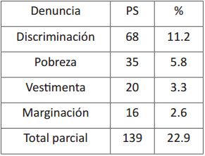 Se mencionaron palabras con alto peso semántico como discriminación (68), pobreza (35), vestimenta (20) y marginación (16); al analizar las razones por las cuales fueron escritas, denuncian cuestiones de injusticia social, desigualdad y olvido por parte de los diferentes gobiernos que han tenido la responsabilidad de contrarrestar dichas situaciones y no han realizado acciones para disminuir tal rezago. Los jóvenes denuncian la discriminación; son conscientes de la desigualdad y marginación en la que viven las etnias; refieren el olvido de que han sido objeto por parte de las autoridades y la afectación que sufren en sus derechos humanos en función de su lengua, vestimenta y tradiciones culturales. Los testimonios de los estudiantes también denuncian cómo en un país con las características de México, multicultural y multiétnico, las minorías étnicas no sólo son tratadas de manera diferenciada, sino que la mayoría de las veces se les coloca en un estatus de inferioridad respecto a los demás grupos sociales.