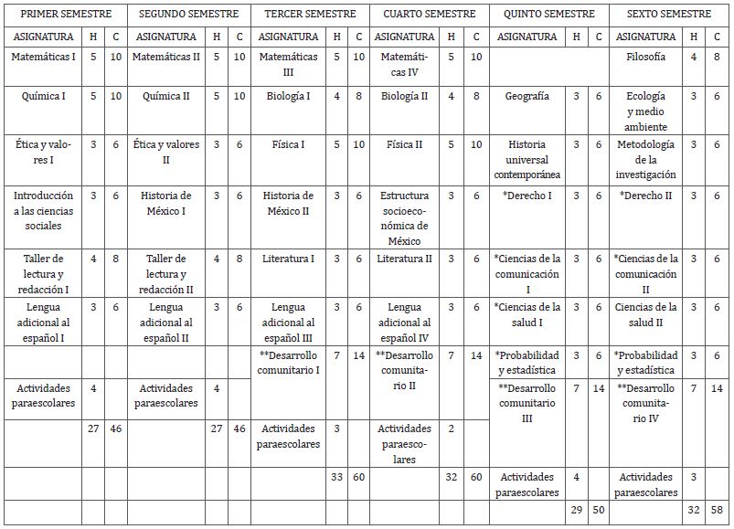 El telebachillerato comunitario, que es un nuevo subsistema creado en el actual sexenio para incorporar estudiantes en comunidades rurales pequeñas, se rige por el plan de estudios del bachillerato general. En el “Mapa curricular del Bachillerato General para telebachillerato comunitario con un enfoque educativo basado en el desarrollo de competencias” (ver Tabla 3), estas últimas solo aparecen en el título. La especificidad del telebachillerato comunitario queda confinada al espacio de una asignatura de las ocho por semestre que se imparte del tercero al sexto semestre: Desarrollo comunitario. Por cierto, este espacio está previsto para la formación del trabajo en otras modalidades del bachillerato general. En cambio, sigue firme el bloque de materias propedéuticas para el estudio de la educación superior durante el quinto y sexto semestre: Probabilidad y estadística, Derecho, Ciencias de la comunicación y Ciencias de la salud (Weiss, 2017b).