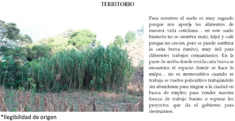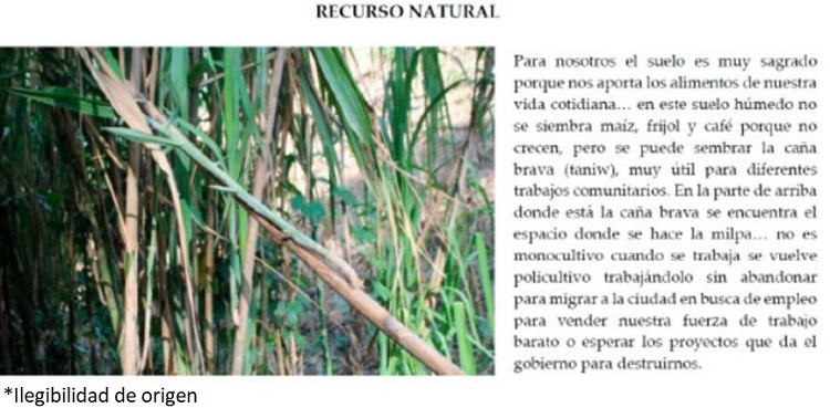 Territorio (“Nosotros vamos a nuestro territorio”; vamos a la milpa; vamos al río). Recurso natural (“pedir un recurso”; pedir maíz; pedir caracol).
