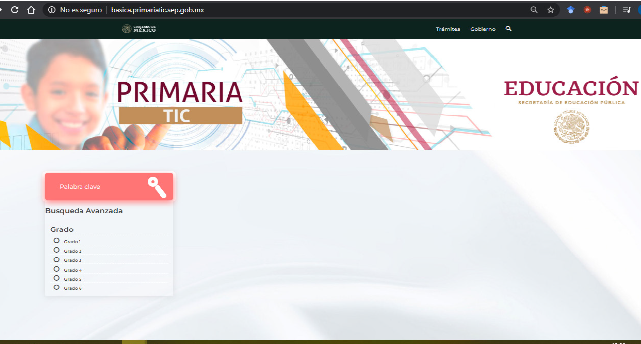 La figura 2 incluye la página de inicio del portal: Mi Primaria TIC, la cual tiene un buscador. Esta página fue de suma importancia para obtener los resultados de la siguiente fase.