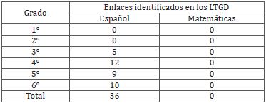 La distribución de los enlaces disponibles en cada LTGD de las asignaturas de español y matemáticas identificados se presenta en la tabla 1.