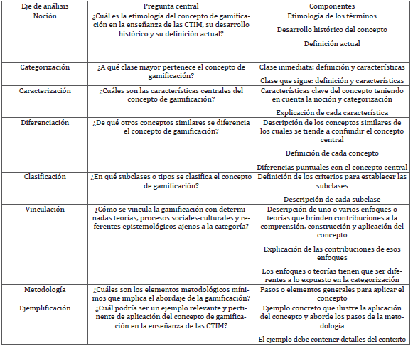 De acuerdo con lo expuesto, nuestro estudio se enfoca en un análisis conceptual sobre la gamificación en la enseñanza de las CTIM, en el que utilizamos ocho categorías.