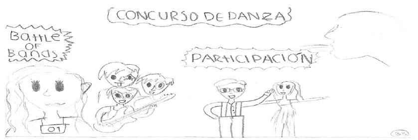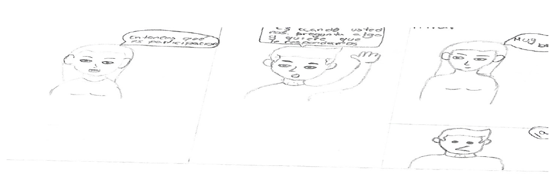 En principio, aunque la consigna no indicaba puntualmente que definieran o graficaran lo que ellos creían que era la participación en la escuela, sino la participación en general, los estudiantes refirieron de manera exclusiva escenas en este ámbito. Lo anterior, si bien puede ser porque el ejercicio se hizo dentro de este contexto, denota también que este grupo de estudiantes identifica a la escuela como un ámbito privilegiado de participación, lo que confirma estudios previos (De la Concepción, 2015).