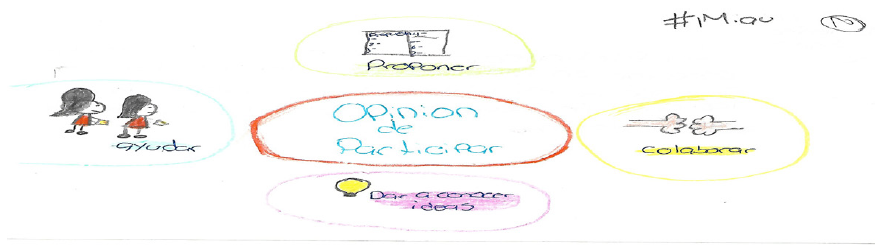 Observamos también producciones gráficas en las que no pudimos leer escenas, sino mensajes escritos que describían la conceptualización de participación.